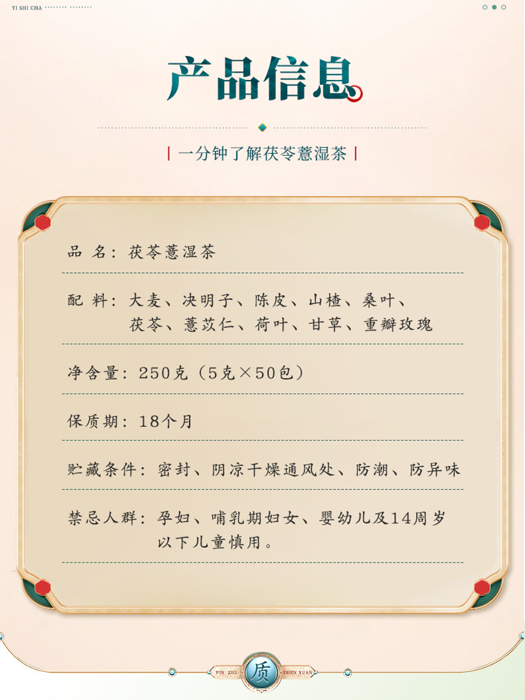 • 溫和無刺激,適合長期養生:與強力瀉藥類產品不同,茯苓薏濕茶的成分均為葯食同源食材,性質溫和,不會對腸胃造成強烈刺激,適合日常堅持飲用,逐步調理體質。